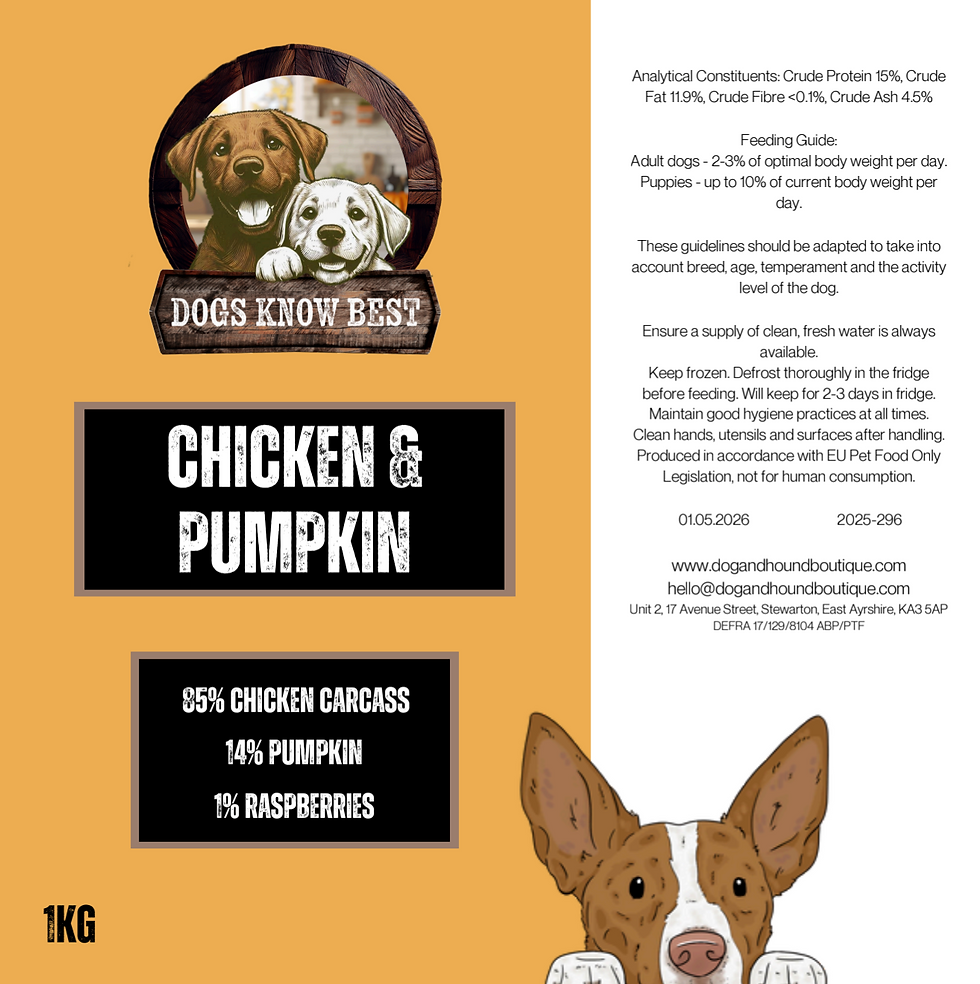 Dogs Know Best Raw: Chicken and Pumpkin 1kg